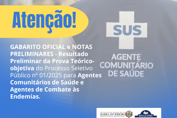 Gabarito oficial e as notas preliminares da prova teórico-objetiva do Processo Seletivo Público nº 01/2025, para Agentes